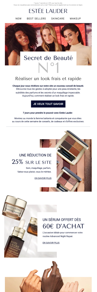 Estée Lauder cherche un partenaire afin de décliner l'ensemble des campagnes emailing de ses marques. En plus de respecter l'identité visuelle de chaque marque du groupe, l'objectif est d'assurer une ergonomie optimale et le respect des spécificités email tout au long de la mission. Le client souhaite, en parallèle décliner certaines campagnes saisonnières sous forme de mini-sites.